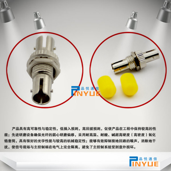产品概念 光纤适配器两端可插入不同接口类型的光纤连接器, 实现FC、SC、ST、LC、MTRJ、MPO、E2000等不同接口间的转换,广泛应用于光纤配线架(ODF)、光纤通信设备、仪器等, 性能超群, 稳定可靠。市面上有的将光纤适配器也叫光纤连接器, 实际上这是两种不同的产品。 主要特性 光纤之间是由适配器通过其内部的开口套管连接起来的,以保证光纤连接器之间的最高连接性能。为了固定在各种面板上,还设计了多种精细的固定法兰。 变换型适配器两端可以连接不同接口类型的光纤连接器, 并提供了APC端面之间的连接. 双联或多联适配器可提高安装密度, 节省空间。 产品类型 根据光纤连接器的不同, 光纤适配器可提供相对应光纤连接器的转接部件. 适用的光纤连接器型号有 FC, SC, ST, LC, MTRJ, E2000 等. 适用的光纤连接器端面有PC, UPC, APC等. SC代表Standard Connector。 ST代表Straight Tip。 FC代表Fiber Connector。 “/”前面部分表示适用的光纤连接器型号。 “SC”接头是标准方型接头,采用工程塑料,具有耐高温,不容易氧化优点。传输设备侧光接口一般用SC接头。 “LC”接头与SC接头形状相似,较SC接头小一些。 “FC”接头是金属接头,一般在ODF侧采用,金属接头的可插拔次数比塑料要多。 连接器的品种型号较多,除了上面介绍的三种外,还有MTRJ、ST、MU等,具体的外观参见下图。 /”后面表明光纤接头截面工艺,即研磨方式。 “PC”在电信运营商的设备中应用得最为广泛,其接头截面是平的。 “UPC”的衰耗比“PC”要小,一般用于有特殊需求的设备,一些国外厂家ODF架内部跳纤用的就是FC/UPC,主要是为提高ODF设备自身的指标。 "APC" 表示斜8度角抛光,在广电和早期的CATV中应用较多的是“APC”型号,其尾纤头采用了带倾角的端面,可以改善电视信号的质量,主要原因是电视信号是模拟光调制,当接头耦合面是垂直的时候,反射光沿原路径返回。由于光纤折射率分布的不均匀会再度返回耦合面,此时虽然能量很小但由于模拟信号是无法彻底消除噪声的,所以相当于在原来的清晰信号上叠加了一个带时延的微弱信号,表现在画面上就是重影。尾纤头带倾角可使反射光不沿原路径返回。一般数字信号一般不存在此问题。 光纤连接器是光纤与光纤之间进行可拆卸(活动)连接的器件,它是把光纤的两个端面精密对接起来,以使发射光纤输出的光能量能最大限度地耦合到接收光纤中去,并使由于其介入光链路而对系统造成的影响减到最小,这是光纤连接器的基本要求。在一定程度上,光纤连接器也影响了光传输系统的可靠性和各项性能。 光纤连接器按传输媒介的不同可分为常见的硅基光纤的单模、多模连接器,还有其它如以塑胶等为传输媒介的光纤连接器;按连接头结构形式可分为:FC、SC、ST、LC、D4、DIN、MU、MT等等各种形式。其中,ST连接器通常用于布线设备端,如光纤配线架、光纤模块等;而SC和MT连接器通常用于网络设备端。按光纤端面形状分有FC、PC(包括SPC或UPC)和APC;按光纤芯数划分还有单芯和多芯(如MT-RJ)之分。光纤连接器应用广泛,品种繁多。在实际应用过程中, 们一般按照光纤连接器结构的不同来加以区分。以下是一些目前比较常见的光纤连接器: FC型:这种连接器最早是由日本NTT研制。FC是FERRULE CONNECTOR的缩写,表明其外部加强方式是采用金属套,紧固方式为螺丝扣。最早,FC类型的连接器,采用的陶瓷插针的对接端。此类连接器结构简单,操作方便,制作容易,但光纤端面对微尘较为敏感,且容易产生菲涅尔反射,提高回波损耗性能较为困难。后来,对该类型连接器做了改进,采用对接端面呈球面的插针(PC),而外部结构没有改变,使得插入损耗和回波损耗性能有了较大幅度的提高。 SC型:这是一种由日本NTT公司开发的光纤连接器。其外壳呈矩形,所采用的插针与耦合套筒的结构尺寸与FC型完全相同,。其中插针的端面多采用PC或APC型研磨方式;紧固方式是采用插拔销闩式,不需旋转。此类连接器价格低廉,插拔操作方便,介入损耗波动小,抗压强度较高,安装密度高。 ST和SC接口是光纤连接器的两种类型,对于10BASE-F连接来说,连接器通常是ST类型的,对于100BASE-FX来说,连接器大部分情况下为SC类型的。ST连接器的芯外露,SC连接器的芯在接头里面。 双锥型:这类光纤连接器中最有代表性的产品由美国贝尔实验室开发研制,它由两个经精密模压成形的端头呈截头圆锥形的圆筒插头和一个内部装有双锥形塑料套筒的耦合组件组成。 DIN47256型:这是一种由德国开发的连接器。这种连接器采用的插针和耦合套筒的结构尺寸与FC型相同,端面处理采用PC研磨方式。与FC型连接器相比,其结构要复杂一些,内部金属结构中有控制压力的弹簧,可以避免因插接压力过大而损伤端面。另外,这种连接器的机械精度较高,因而介入损耗值较小。 MT-RJ起步于NTT开发的MT连接器,带有与RJ-45型LAN电连接器相同的闩锁机构,通过安装于小型套管两侧的导向销对准光纤,为便于与光收发信机相连,连接器端面光纤为双芯(间隔0.75MM)排列设计,是主要用于数据传输的下一代高密度光纤连接器。 LC型连接器是著名BELL(贝尔)研究所研究开发出来的,采用操作方便的模块化插孔(RJ)闩锁机理制成。其所采用的插针和套筒的尺寸是普通SC、FC等所用尺寸的一半,为1.25MM。这样可以提高光纤配线架中光纤连接器的密度。目前,在单模SFF方面,LC类型的连接器实